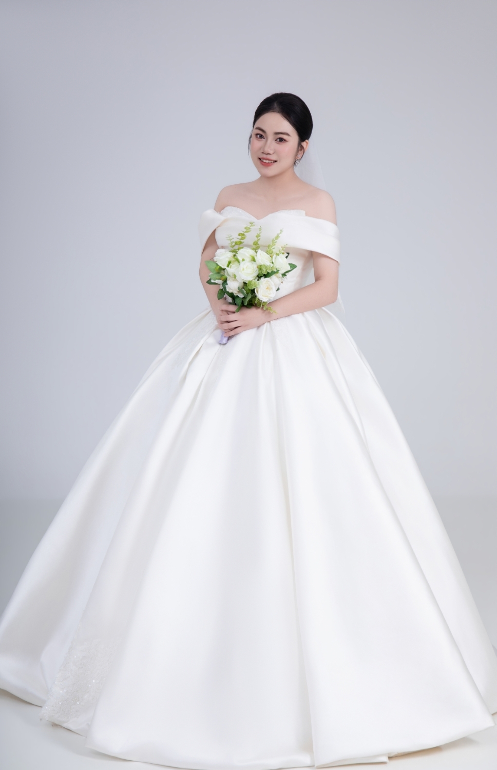 • 一字肩齐地婚纱