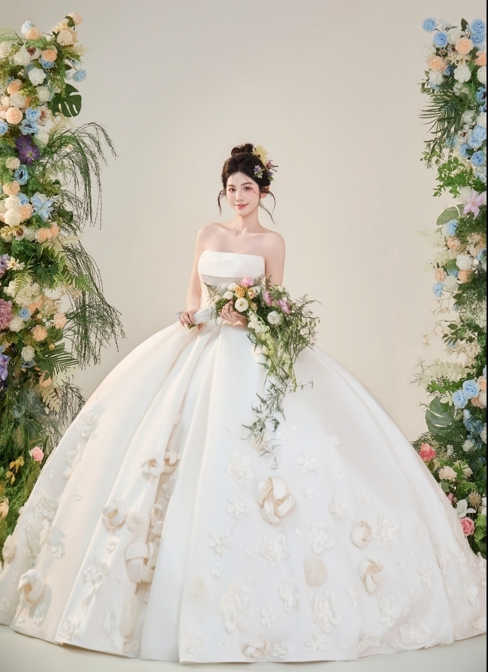 花朵缎面主纱