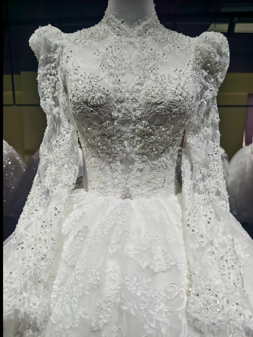 气质蕾丝长袖拖尾婚纱