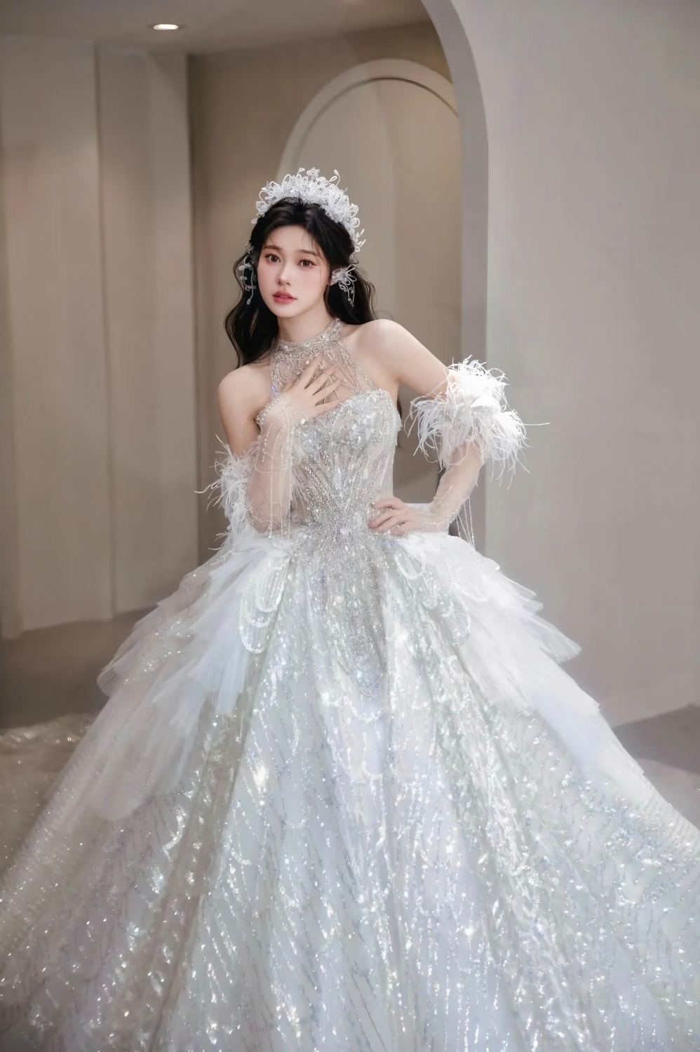 仙气轻奢主纱抹胸加挂脖