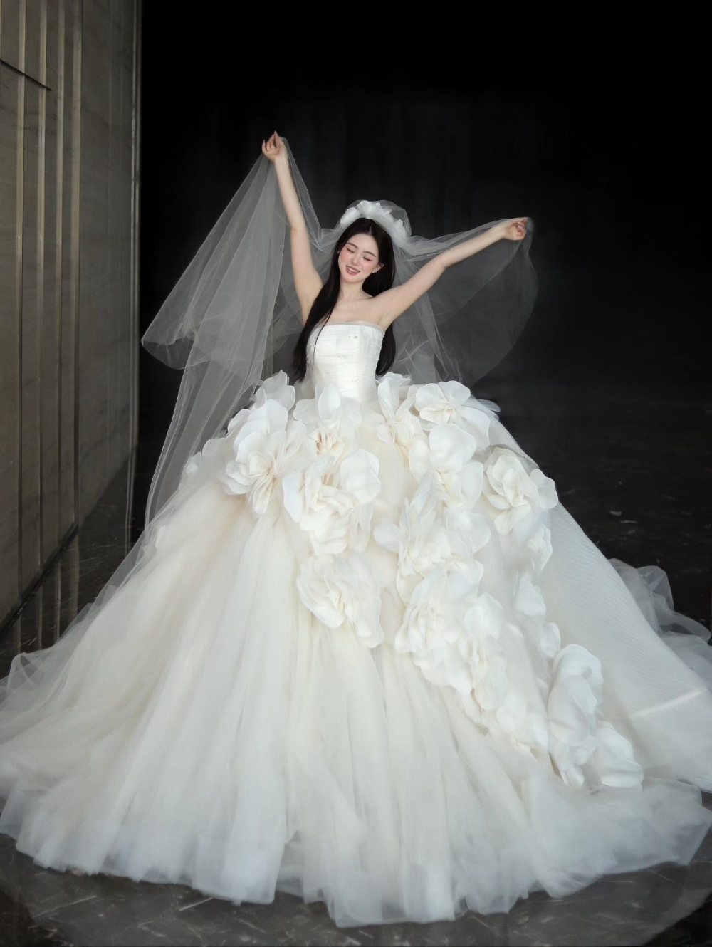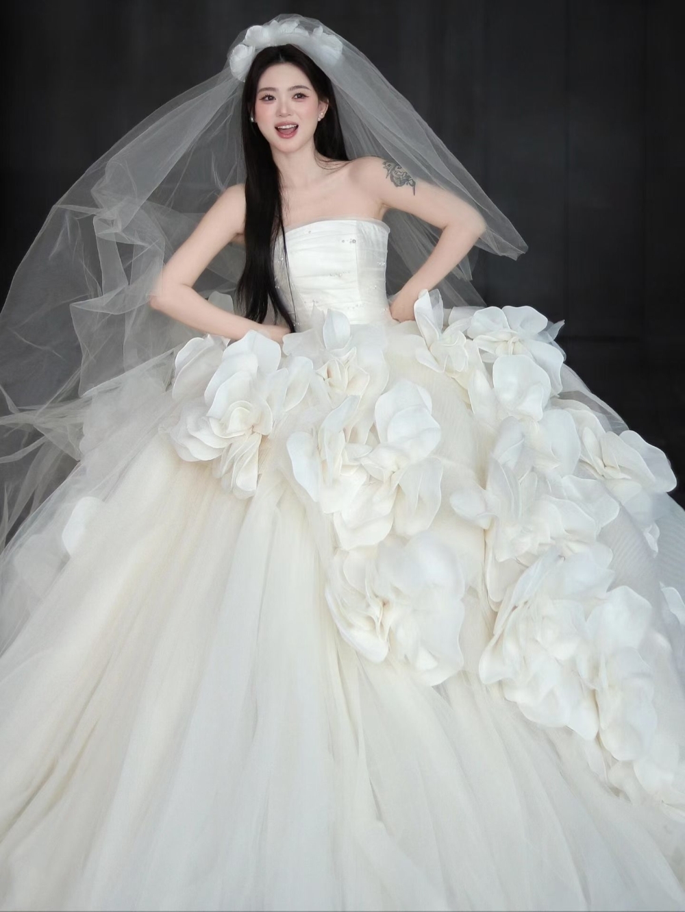 心动公主裙花瓣大拖尾